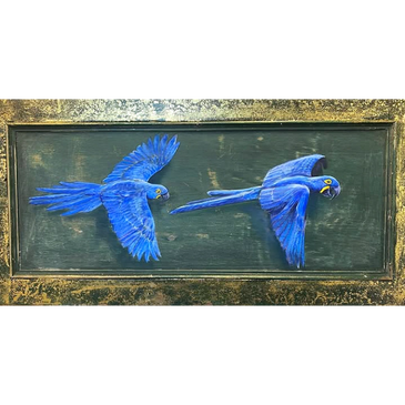 Tanya produces unique paintings on wood discovered washed-up on beaches, buried in gardens and reclaimed from skips. Each piece offers wonderful possibilities: the sea-worn textures and patterns of grain might suggest rippled water or downland fields. Flaking paint on old doors might suggest arctic landscapes. Tanya preserves and stabilises the wood and works in oil to paint creatures which seem appropriate and fitting, often enhancing with gold leaf.